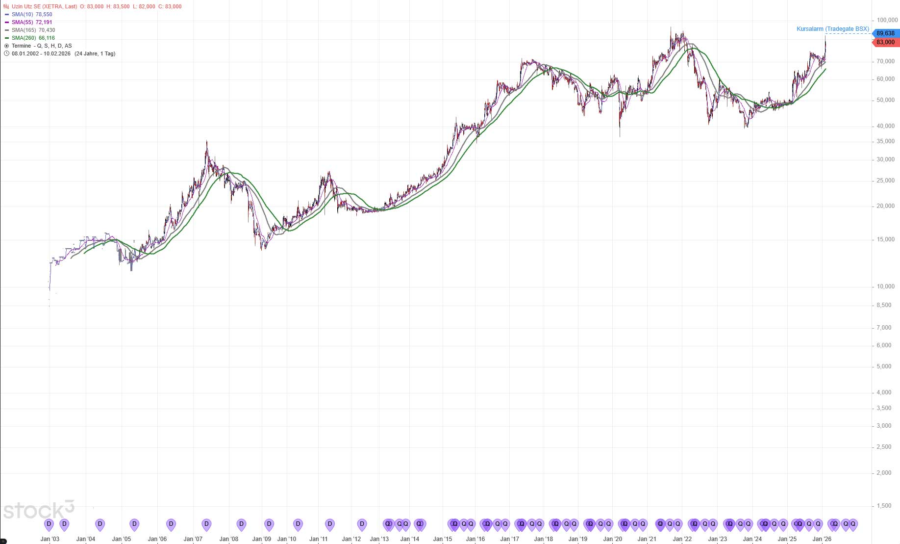 Als Nebenwert, der an der Baukonjunktur „hängt“ sehen wir eine Verfünffachung im Kurs seit 2003. Es flossen in den vergangen 25 Jahren auch jährlich Dividenden, die meist gesteigert und nur sehr selten gekürzt wurden. Wenn man diese einrechnet, ist die Aktie ein Tenbagger.